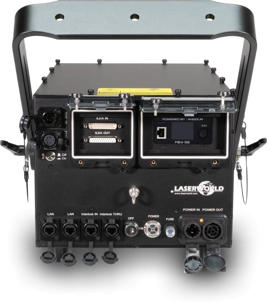 Via the internal FB4 interface, the Laserworld PL-30.000RGB FB4 IP65 (2 pcs) offers various control options, including DMX, Art-Net as well as direct computer control via network (QuickShow software or BEYOND software required).