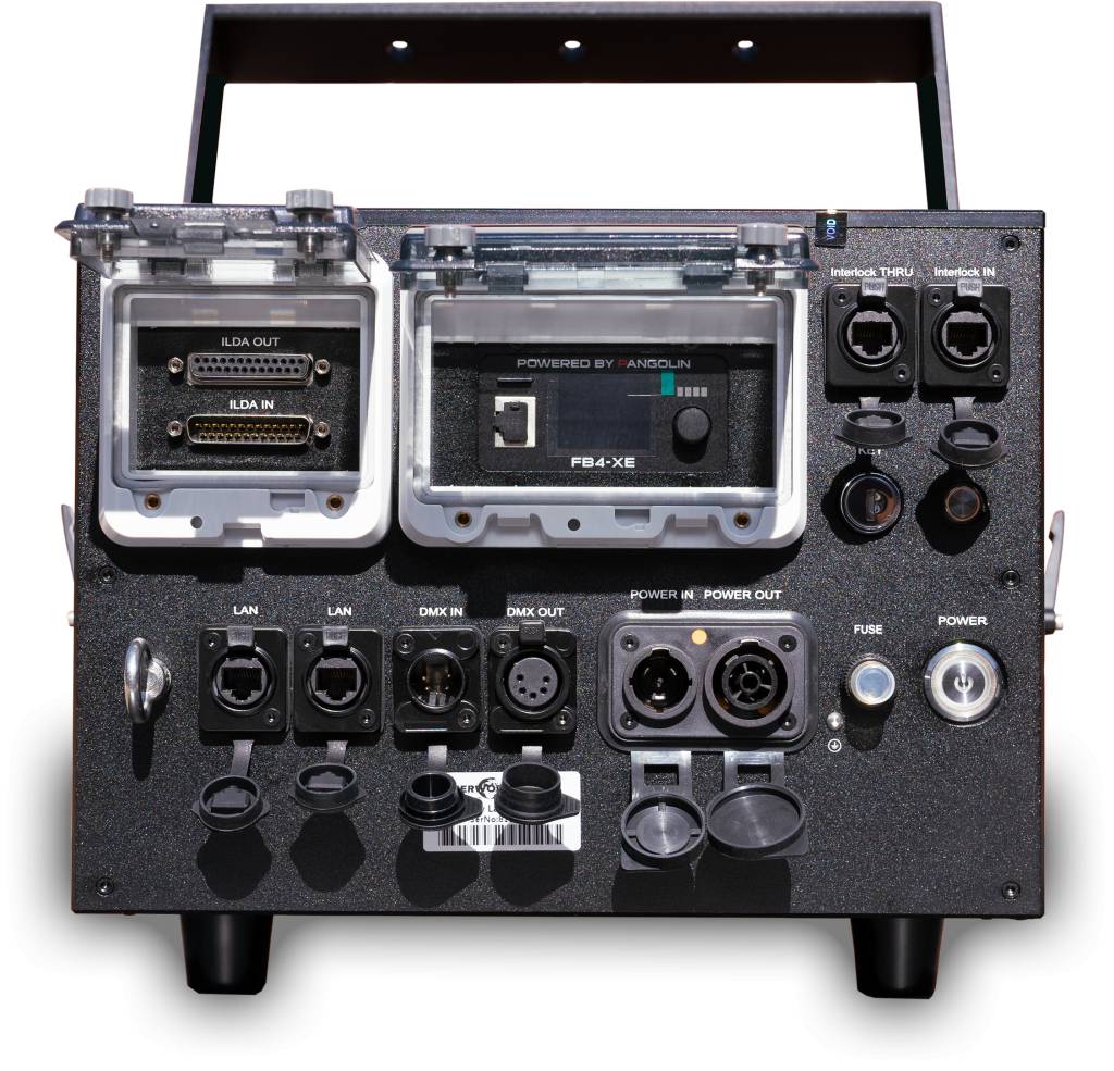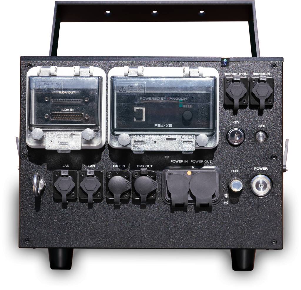 Via the internal FB4 interface, the Laserworld PL-30.000RGB FB4 MK3 (2 pcs) offers various control options, including DMX, Art-Net as well as direct computer control via network (QuickShow software included).