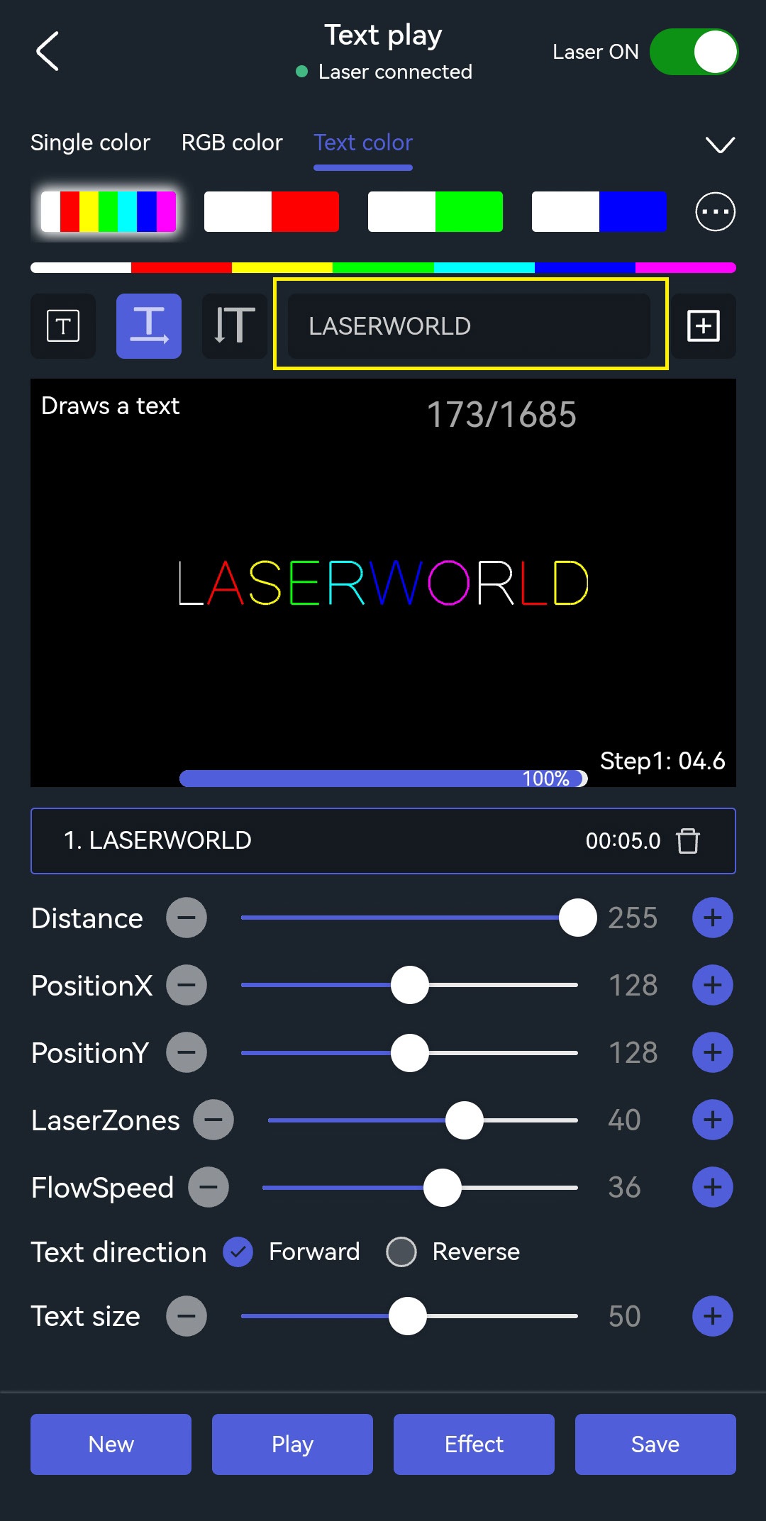Patterns can also be animated in the Cube Laser Control App: