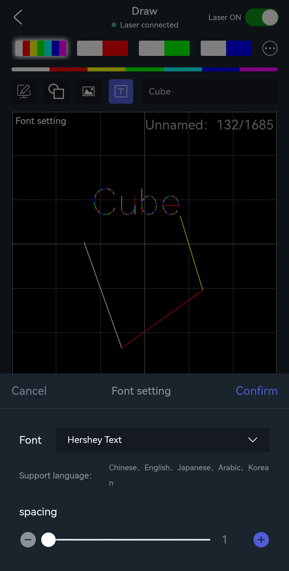 With the Cube Laser Control App, it is easy to create short custom texts and adjust them individually.