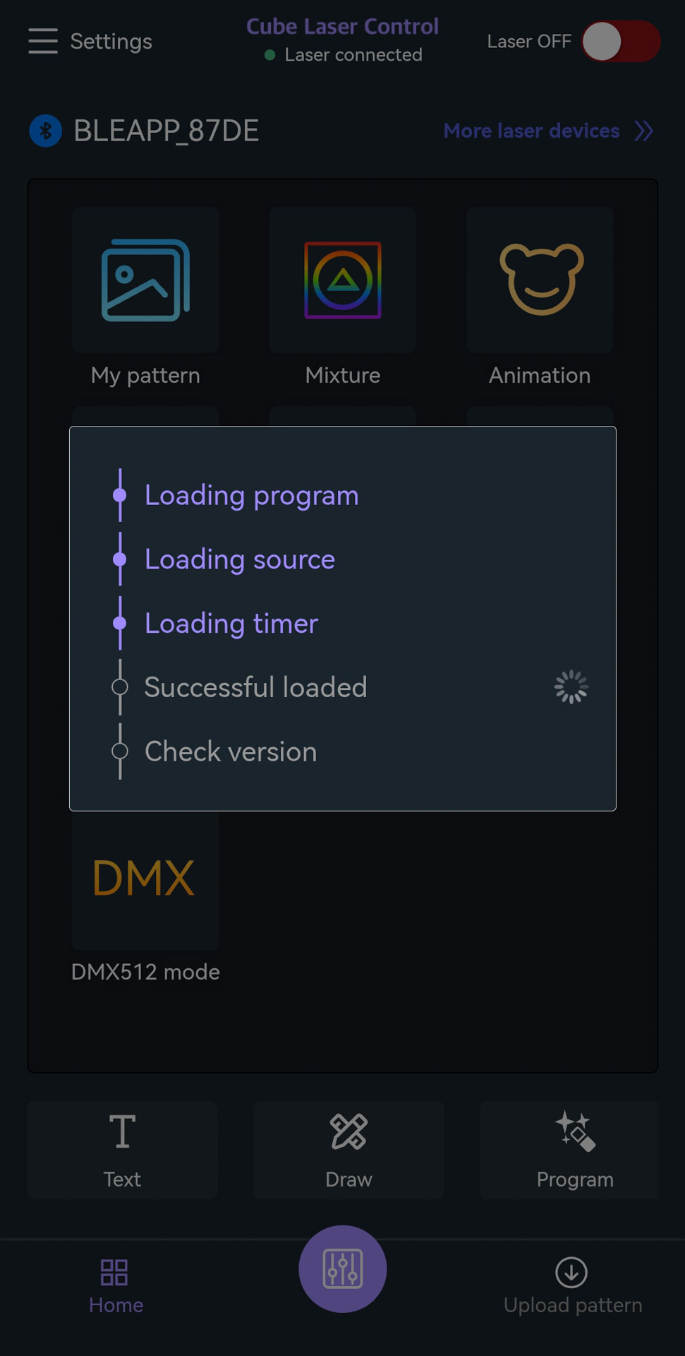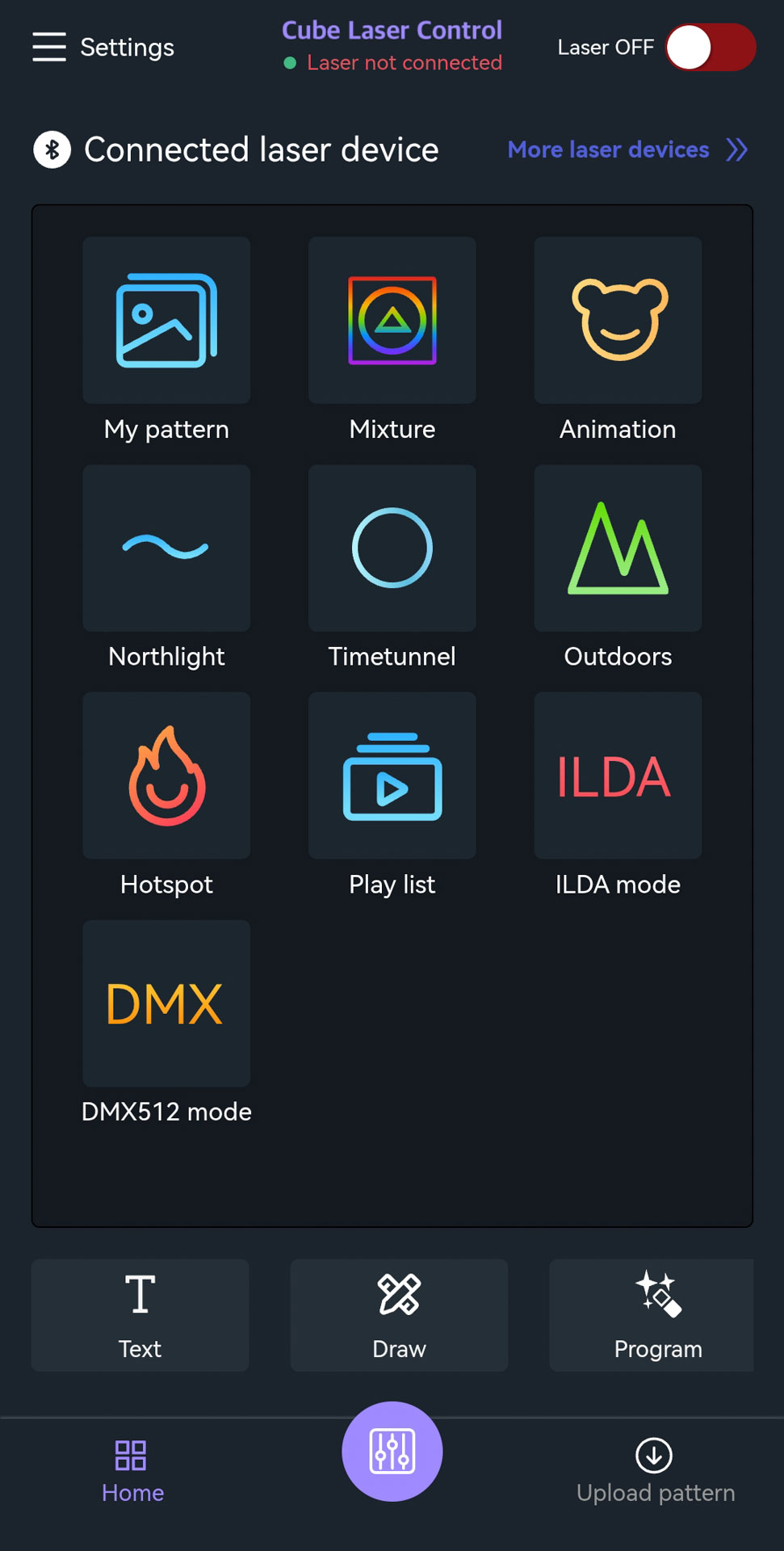 - The laser device is automatically detected (if not, see Troubleshooting connectivity issues).