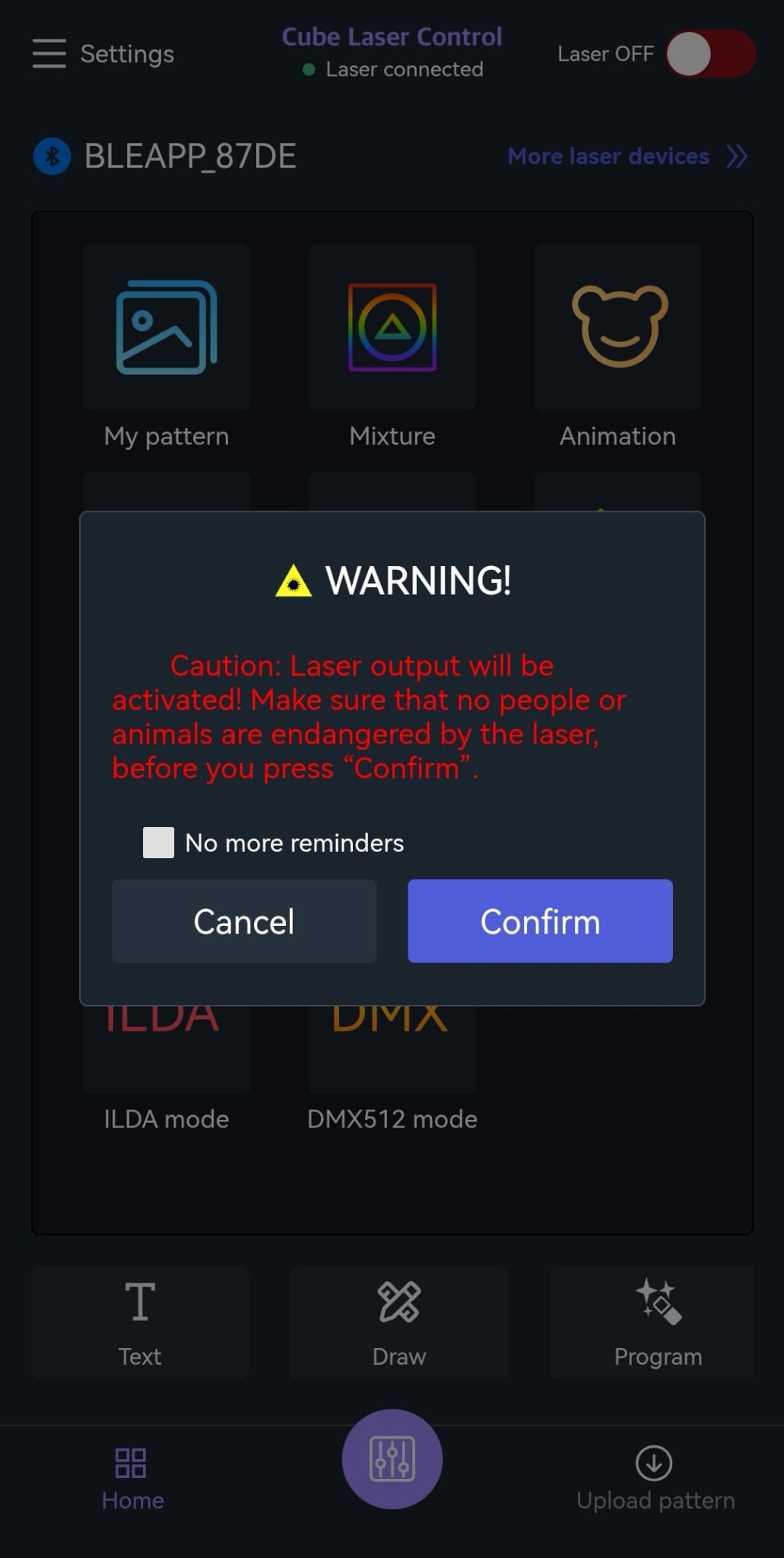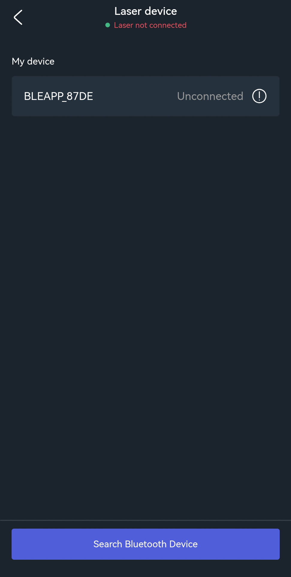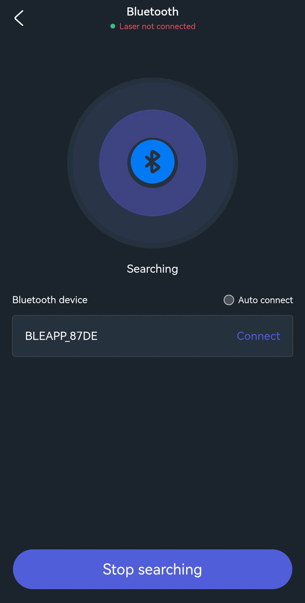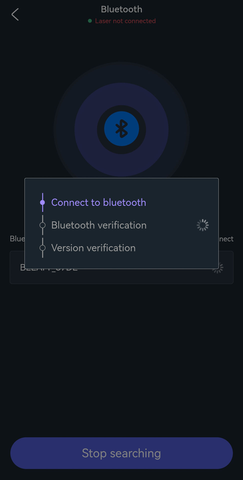 - A green dot will appear next to “Laser connected” and indicates that the Bluetooth connection was established successfully.
