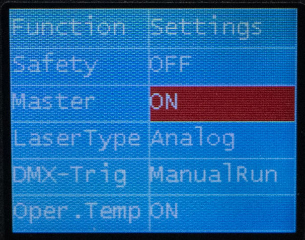 - Turn the rotary knob to "Function" and then select Quickplay, DMX/Slave or Settings.